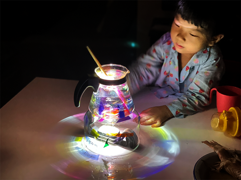 停電小遊戲 12月 26, 2021 光と影, 小実験, 色 搬家後沒幾天突然來個大停電@@ 挖出2個燈,夏天的停電有點熱 對於剛搬家不熟悉的環境有點害怕的小Little 只有小燈很想擴散光源 先試了罩上我們的優格缽,還好剛好吃完有空。前幾天完剩的玻璃紙也拿來玩吧 放上水加滿水的咖啡壺 瞬間無聊的空間活潑起來 一一把玻璃紙放入水中看看會有什麼效果。小little還有點茫然。 燈光的轉變攪拌彩色在搖晃然後Littles就自己玩了 無聊的停電變成好玩的停電日 反射在天花板的圖案也很有趣 距離這個遊戲已經大概有半年的時間的,其實就算沒有停電也可以重溫換一點材料。享受黑暗與光的交錯過程。 投稿ナビゲーション PreviousPrevious post:蜘蛛與蒼蠅Next Next post:閃耀不閃耀
