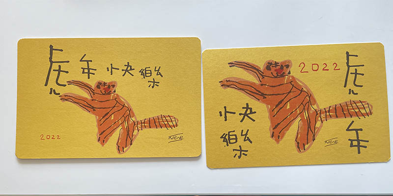 為了迎接2022年大Little畫了幾隻老虎,我們很喜歡其中一隻。決定把它印成明信片....
