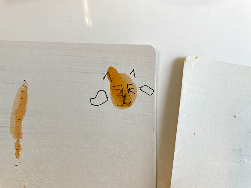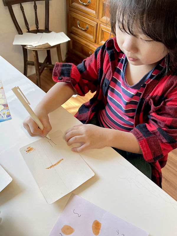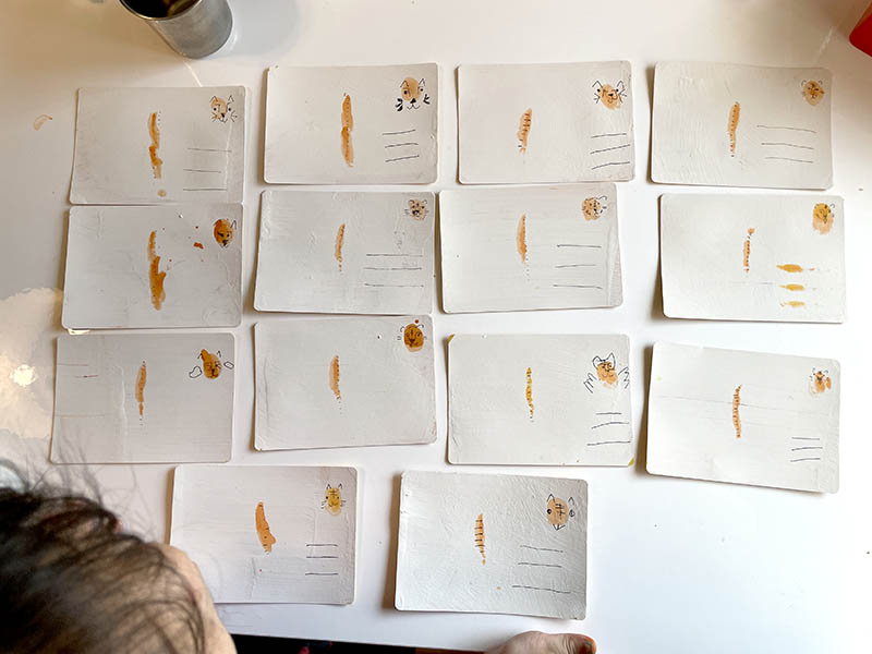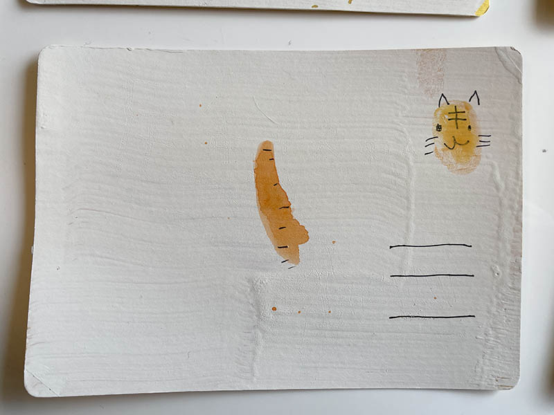 如果明信片沒有印錯的話,我們也沒有機會研究明信片的結構。Littles還不能理解明信片的郵票,地址收信人欄,以及明信片為何能送達對方。藉由塗白~製作完成的時間剛好研究了明信片這件事。大Little決定選了幾隻她喜愛的老虎,要寫好寄給她的爸爸,奶奶跟好友。